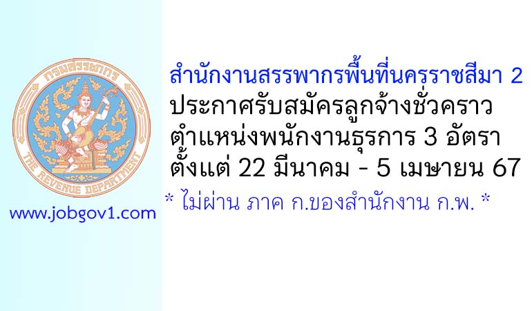 สำนักงานสรรพากรพื้นที่นครราชสีมา 2 รับสมัครลูกจ้างชั่วคราว ตำแหน่งพนักงานธุรการ 3 อัตรา ตั้งแต่ 22 มีนาคม – 5 เมษายน 2567