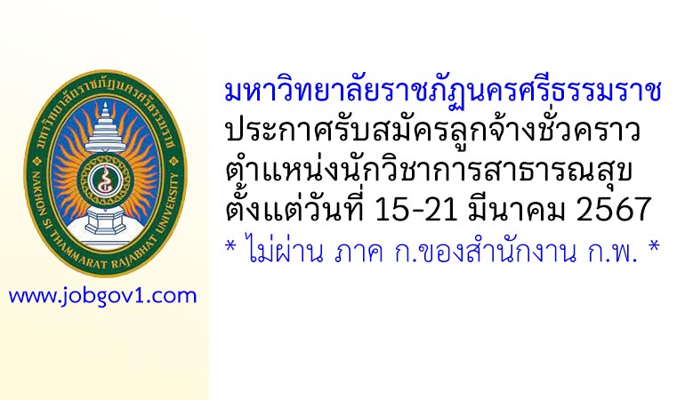 มหาวิทยาลัยราชภัฏนครศรีธรรมราช รับสมัครลูกจ้างชั่วคราว ตำแหน่งนักวิชาการสาธารณสุข ตั้งแต่วันที่ 15-21 มีนาคม 2567