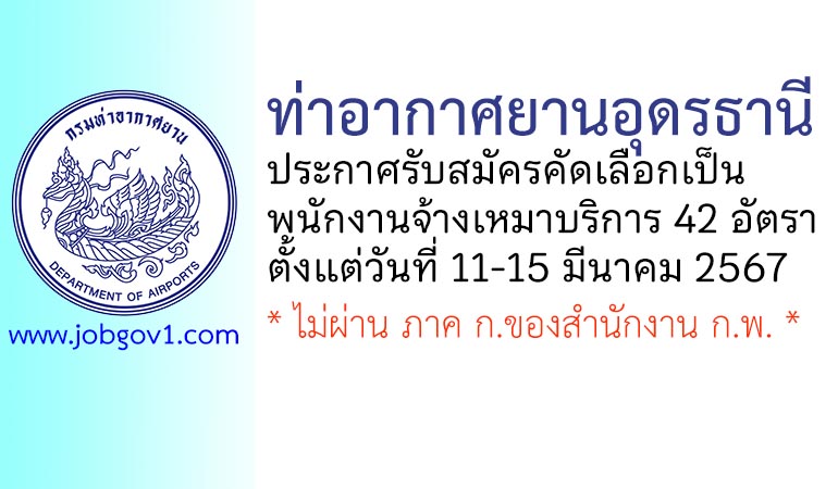 ท่าอากาศยานอุดรธานี รับสมัครคัดเลือกพนักงานจ้างเหมาบริการ 42 อัตรา ตั้งแต่วันที่ 11-15 มีนาคม 2567