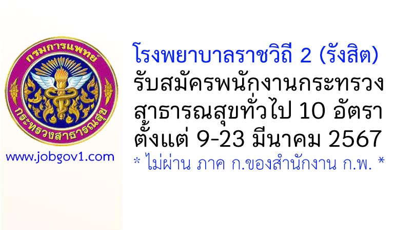 โรงพยาบาลราชวิถี 2 (รังสิต) รับสมัครพนักงานกระทรวงสาธารณสุขทั่วไป 10 อัตรา ตั้งแต่วันที่ 9-23 มีนาคม 2567