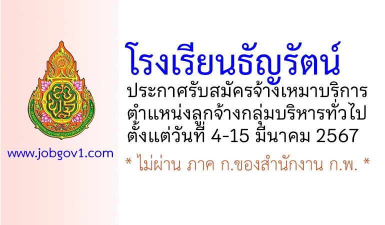 โรงเรียนธัญรัตน์ รับสมัครจ้างเหมาบริการ ตำแหน่งลูกจ้างกลุ่มบริหารทั่วไป ตั้งแต่วันที่ 4-15 มีนาคม 2567