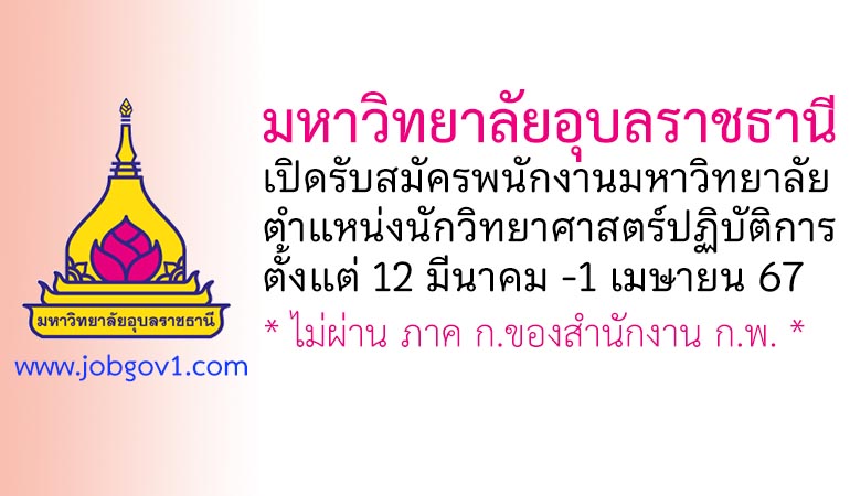 ประกาศมหาวิทยาลัยอุบลราชธานี เรื่อง รับสมัครสอบแข่งขันบุคคลเพื่อบรรจุและแต่งตั้งเป็นพนักงานมหาวิทยาลัย ตำแหน่งนักวิทยาศาสตร์ปฏิบัติการ สังกัดสำนักงานส่งเสริมบริหารงานวิจัย บริการวิชาการและทำนุบำรุงศิลปวัฒนธรรม สำนักงานอธิการบดี มหาวิทยาลัยอุบลราชธานี