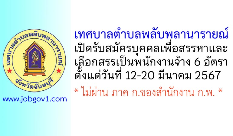เทศบาลตำบลพลับพลานารายณ์ รับสมัครบุคคลเพื่อสรรหาและเลือกสรรเป็นพนักงานจ้าง 6 อัตรา ตั้งแต่วันที่ 12-20 มีนาคม 2567