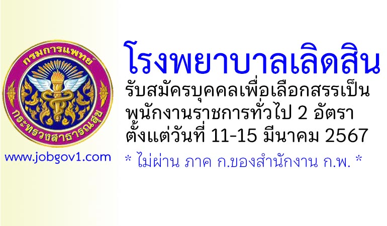 โรงพยาบาลเลิดสิน รับสมัครบุคคลเพื่อเลือกสรรเป็นพนักงานราชการทั่วไป 2 อัตรา ตั้งแต่วันที่ 11-15 มีนาคม 2567