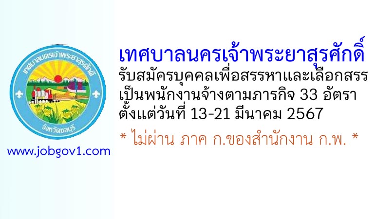 เทศบาลนครเจ้าพระยาสุรศักดิ์ รับสมัครบุคคลเพื่อสรรหาและเลือกสรรเป็นพนักงานจ้างตามภารกิจ 33 อัตรา ตั้งแต่วันที่ 13-21 มีนาคม 2567