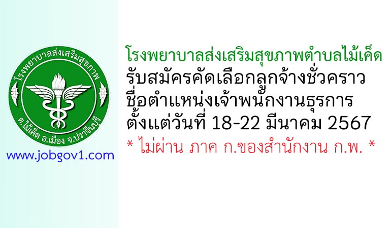โรงพยาบาลส่งเสริมสุขภาพตำบลไม้เค็ด รับสมัครคัดเลือกลูกจ้างชั่วคราว ตำแหน่งเจ้าพนักงานธุรการ ตั้งแต่วันที่ 18-22 มีนาคม 2567