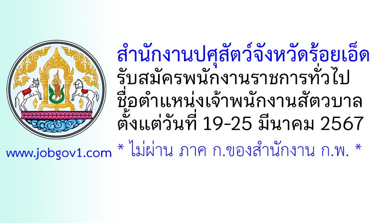 สำนักงานปศุสัตว์จังหวัดร้อยเอ็ด รับสมัครพนักงานราชการทั่วไป ตำแหน่งเจ้าพนักงานสัตวบาล ตั้งแต่วันที่ 19-25 มีนาคม 2567