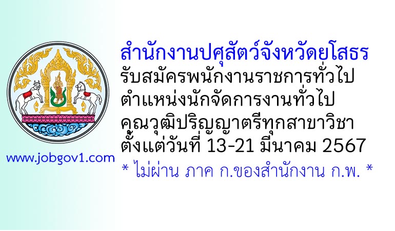 สำนักงานปศุสัตว์จังหวัดยโสธร รับสมัครพนักงานราชการทั่วไป ตำแหน่งนักจัดการงานทั่วไป ตั้งแต่วันที่ 13-21 มีนาคม 2567