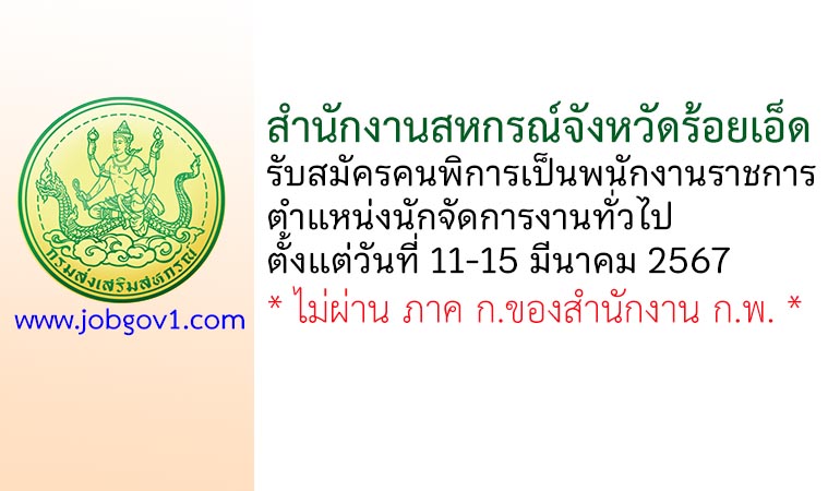 สำนักงานสหกรณ์จังหวัดร้อยเอ็ด รับสมัครคนพิการเป็นพนักงานราชการ ตำแหน่งนักจัดการงานทั่วไป ตั้งแต่วันที่ 11-15 มีนาคม 2567