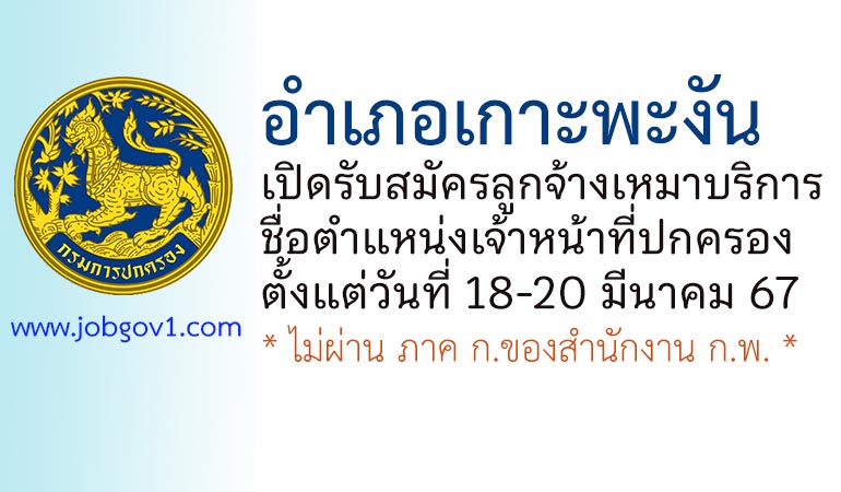 อำเภอเกาะพะงัน รับสมัครลูกจ้างเหมาบริการ ตำแหน่งเจ้าหน้าที่ปกครอง ตั้งแต่วันที่ 18-20 มีนาคม 2567