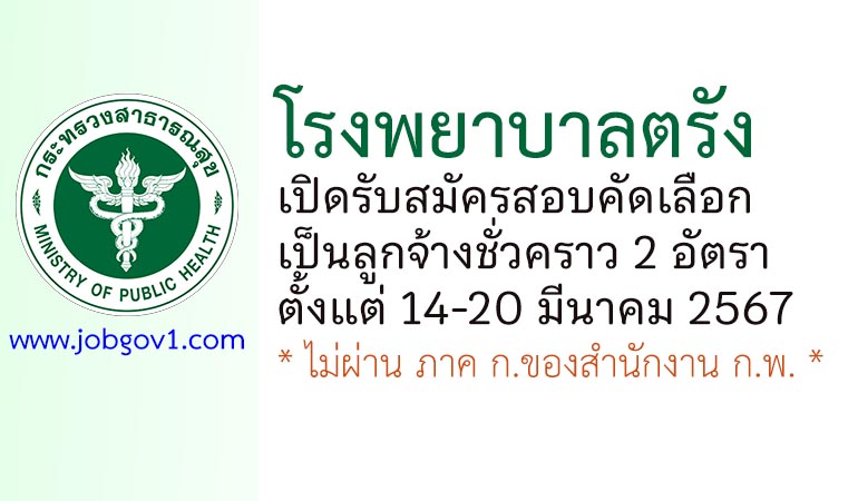 โรงพยาบาลตรัง รับสมัครสอบคัดเลือกเป็นลูกจ้างชั่วคราว 2 อัตรา ตั้งแต่วันที่ 14-20 มีนาคม 2567