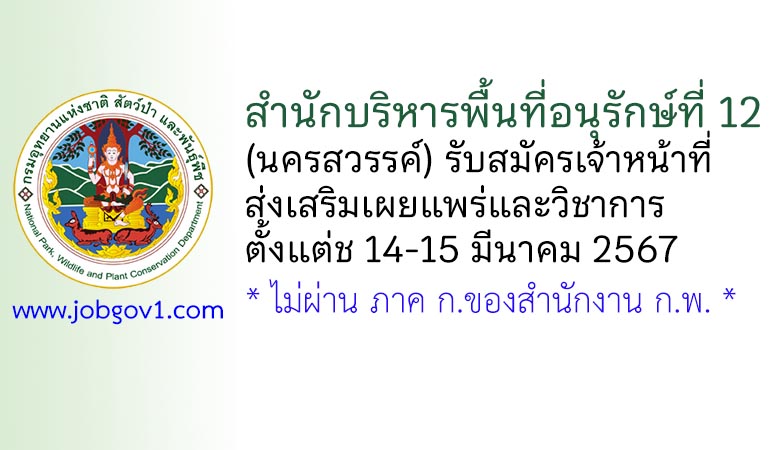 สำนักบริหารพื้นที่อนุรักษ์ที่ 12 (นครสวรรค์) รับสมัครเจ้าหน้าที่ส่งเสริมเผยแพร่และวิชาการ ตั้งแต่วันที่ 14-15 มีนาคม 2567