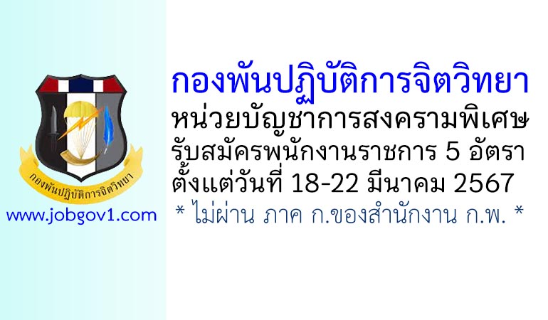 กองพันปฏิบัติการจิตวิทยา รับสมัครบุคคลพลเรือนเข้าเป็นพนักงานราชการ 5 อัตรา ตั้งแต่วันที่ 18-22 มีนาคม 2567