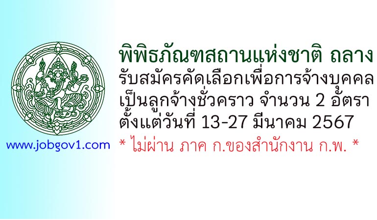 พิพิธภัณฑสถานแห่งชาติ ถลาง รับสมัครลูกจ้างชั่วคราว 2 อัตรา ตั้งแต่วันที่ 13-27 มีนาคม 2567