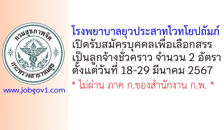 โรงพยาบาลยุวประสาทไวทโยปถัมภ์ รับสมัครบุคคลเพื่อเลือกสรรเป็นลูกจ้างชั่วคราว 2 อัตรา ตั้งแต่วันที่ 18-29 มีนาคม 2567