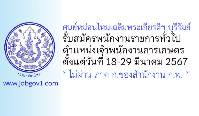 ศูนย์หม่อนไหมเฉลิมพระเกียรติฯ บุรีรัมย์ รับสมัครพนักงานราชการทั่วไป ตำแหน่งเจ้าพนักงานการเกษตร ตั้งแต่วันที่ 18-29 มีนาคม 2567