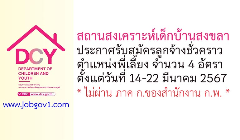 สถานสงเคราะห์เด็กบ้านสงขลา รับสมัครลูกจ้างชั่วคราว ตำแหน่งพี่เลี้ยง 4 อัตรา ตั้งแต่วันที่ 14-22 มีนาคม 2567