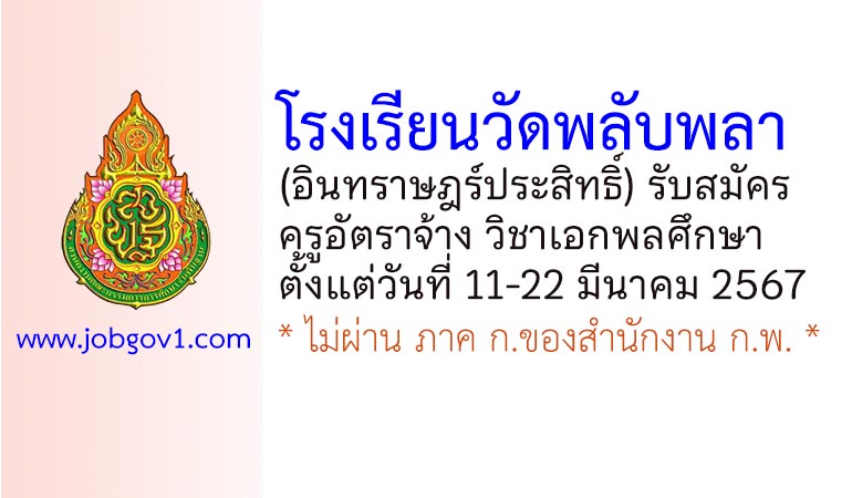 โรงเรียนวัดพลับพลา(อินทราษฎร์ประสิทธิ์) รับสมัครครูอัตราจ้าง วิชาเอกพลศึกษา ตั้งแต่วันที่ 11-22 มีนาคม 2567