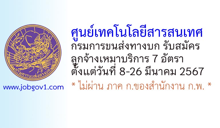 ศูนย์เทคโนโลยีสารสนเทศ กรมการขนส่งทางบก รับสมัครลูกจ้างเหมาบริการ 7 อัตรา ตั้งแต่วันที่ 8-26 มีนาคม 2567