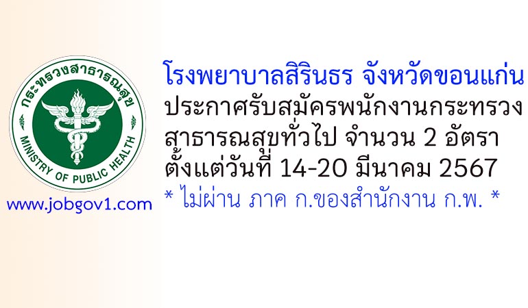 โรงพยาบาลสิรินธร จังหวัดขอนแก่น รับสมัครพนักงานกระทรวงสาธารณสุขทั่วไป 2 อัตรา ตั้งแต่วันที่ 14-20 มีนาคม 2567