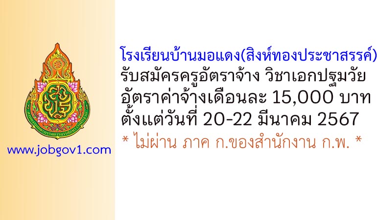 โรงเรียนบ้านมอแดง(สิงห์ทองประชาสรรค์) รับสมัครครูอัตราจ้าง สาขาวิชาเอกปฐมวัย ตั้งแต่วันที่ 20-22 มีนาคม 2567