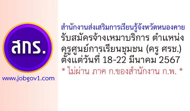 สำนักงานส่งเสริมการเรียนรู้จังหวัดหนองคาย รับสมัครจ้างเหมาบริการ ตำแหน่งครูศูนย์การเรียนชุมชน (ครู ศรช.) ตั้งแต่วันที่ 18-22 มีนาคม 2567