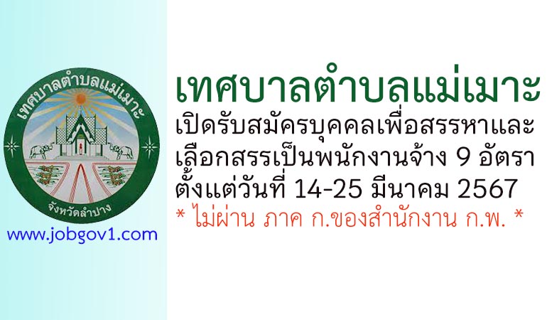 เทศบาลตำบลแม่เมาะ รับสมัครบุคคลเพื่อสรรหาและเลือกสรรเป็นพนักงานจ้าง 9 อัตรา ตั้งแต่วันที่ 14-25 มีนาคม 2567