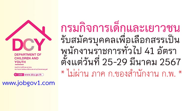 กรมกิจการเด็กและเยาวชน รับสมัครบุคคลเพื่อเลือกสรรเป็นพนักงานราชการทั่วไป 41 อัตรา ตั้งแต่วันที่ 25-29 มีนาคม 2567