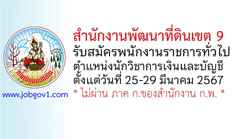 สำนักงานพัฒนาที่ดินเขต 9 รับสมัครพนักงานราชการทั่วไป ตำแหน่งนักวิชาการเงินและบัญชี ตั้งแต่วันที่ 25-29 มีนาคม 2567