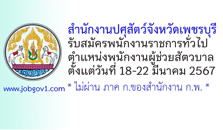 สำนักงานปศุสัตว์จังหวัดเพชรบุรี รับสมัครพนักงานราชการทั่วไป ตำแหน่งพนักงานผู้ช่วยสัตวบาล ตั้งแต่วันที่ 18-22 มีนาคม 2567