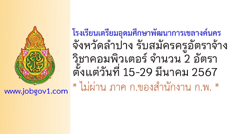 ประกาศโรงเรียนเตรียมอุดมศึกษาพัฒนาการเขลางค์นคร เรื่อง รับสมัครคัดเลือกบุคคลเพื่อจ้างเป็นลูกจ้างชั่วคราวรายเดือน ตำแหน่ง ครูอัตราจ้าง วิชา คอมพิวเตอร์