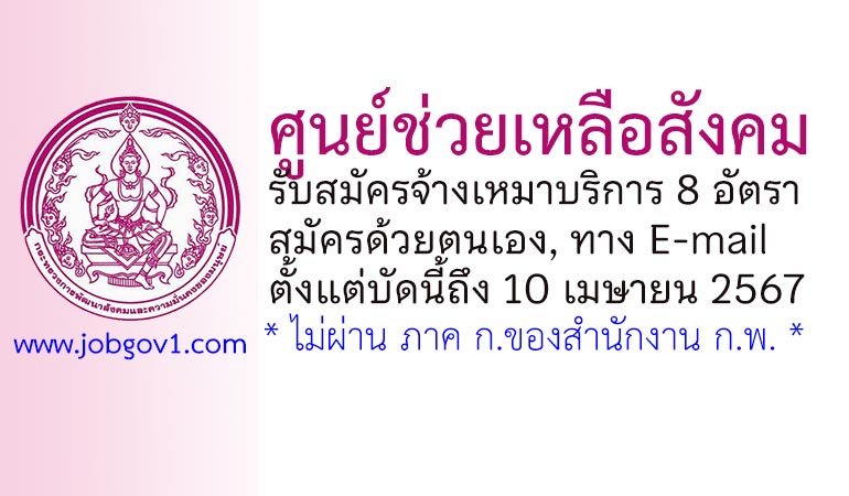 ศูนย์ช่วยเหลือสังคม รับสมัครพนักงานจ้างเหมาบริการ 8 อัตรา ตั้งแต่บัดนี้ถึง 10 เมษายน 2567
