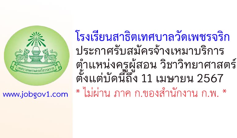 โรงเรียนสาธิตเทศบาลวัดเพชรจริก รับสมัครจ้างเหมาบริการ ตำแหน่งครูผู้สอน วิชาวิทยาศาสตร์ ตั้งแต่บัดนี้ถึง 11 เมษายน 2567