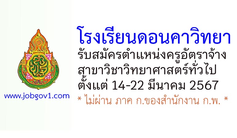 โรงเรียนดอนคาวิทยา รับสมัครครูอัตราจ้าง สาขาวิชาวิทยาศาสตร์ทั่วไป ตั้งแต่วันที่ 14-22 มีนาคม 2567