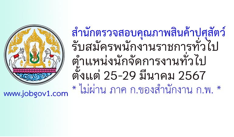 สำนักตรวจสอบคุณภาพสินค้าปศุสัตว์ รับสมัครพนักงานราชการทั่วไป ตำแหน่งนักจัดการงานทั่วไป ตั้งแต่วันที่ 25-29 มีนาคม 2567