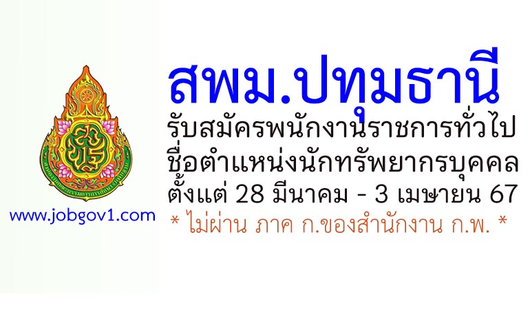 สพม.ปทุมธานี รับสมัครพนักงานราชการทั่วไป ตำแหน่งนักทรัพยากรบุคคล ตั้งแต่ 28 มีนาคม – 3 เมษายน 2567