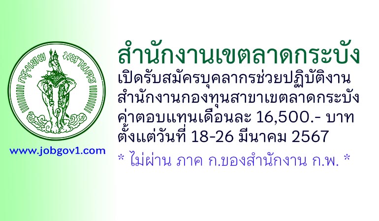 สำนักงานเขตลาดกระบัง รับสมัครบุคลากรช่วยปฏิบัติงานสำนักงานกองทุนสาขาเขตลาดกระบัง ตั้งแต่วันที่ 18-26 มีนาคม 2567