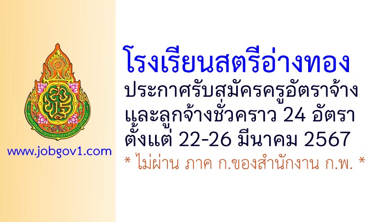โรงเรียนสตรีอ่างทอง รับสมัครครูอัตราจ้าง และลูกจ้างชั่วคราว 24 อัตรา ตั้งแต่วันที่ 22-26 มีนาคม 2567