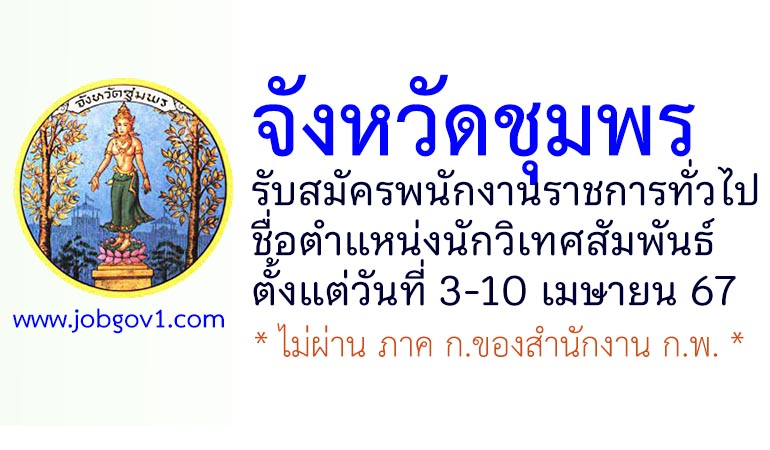 จังหวัดชุมพร รับสมัครพนักงานราชการทั่วไป ตำแหน่งนักวิเทศสัมพันธ์ ตั้งแต่วันที่ 3-10 เมษายน 2567