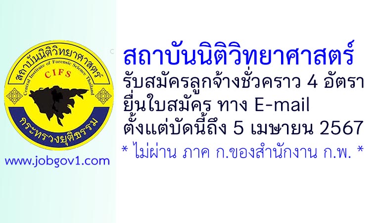 สถาบันนิติวิทยาศาสตร์ รับสมัครลูกจ้างชั่วคราว 4 อัตรา ตั้งแต่บัดนี้ถึง 5 เมษายน 2567