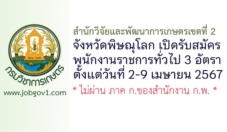 สำนักวิจัยและพัฒนาการเกษตรเขตที่ 2 จังหวัดพิษณุโลก รับสมัครบุคคลเพื่อเลือกสรรเป็นพนักงานราชการทั่วไป 3 อัตรา ตั้งแต่วันที่ 2-9 เมษายน 2567
