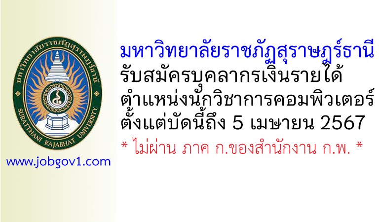 มหาวิทยาลัยราชภัฏสุราษฎร์ธานี รับสมัครบุคลากรเงินรายได้ ตำแหน่งนักวิชาการคอมพิวเตอร์ ตั้งแต่บัดนี้ถึง 5 เมษายน 2567