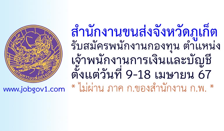 สำนักงานขนส่งจังหวัดภูเก็ต รับสมัครบุคคลเพื่อเลือกสรรเป็นพนักงานกองทุน ตำแหน่งเจ้าพนักงานการเงินและบัญชี ตั้งแต่วันที่ 9-18 เมษายน 2567