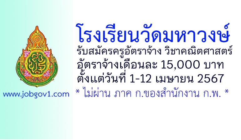 โรงเรียนวัดมหาวงษ์ รับสมัครครูอัตราจ้าง วิชาเอกคณิตศาสตร์ ตั้งแต่วันที่ 1-12 เมษายน 2567