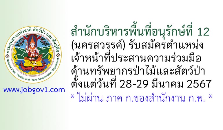 สำนักบริหารพื้นที่อนุรักษ์ที่ 12 (นครสวรรค์) รับสมัครเจ้าหน้าที่ประสานความร่วมมือด้านทรัพยากรป่าไม้และสัตว์ป่า ตั้งแต่วันที่ 28-29 มีนาคม 2567
