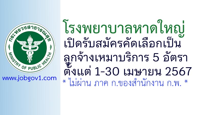 โรงพยาบาลหาดใหญ่ รับสมัครคัดเลือกเป็นลูกจ้างเหมาบริการ 5 อัตรา ตั้งแต่วันที่ 1-30 เมษายน 2567