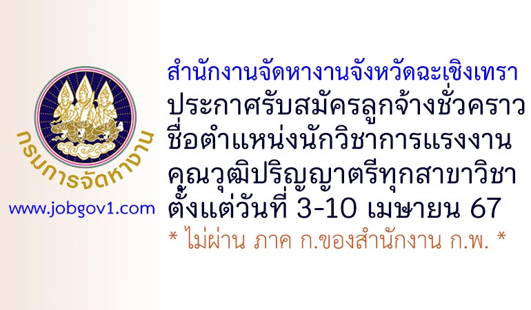 สำนักงานจัดหางานจังหวัดฉะเชิงเทรา รับสมัครลูกจ้างชั่วคราว ตำแหน่งนักวิชาการแรงงาน ตั้งแต่วันที่ 3-10 เมษายน 2567