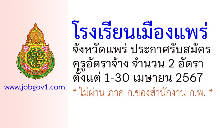 โรงเรียนเมืองแพร่ รับสมัครครูอัตราจ้าง จำนวน 2 อัตรา ตั้งแต่วันที่ 1-30 เมษายน 2567