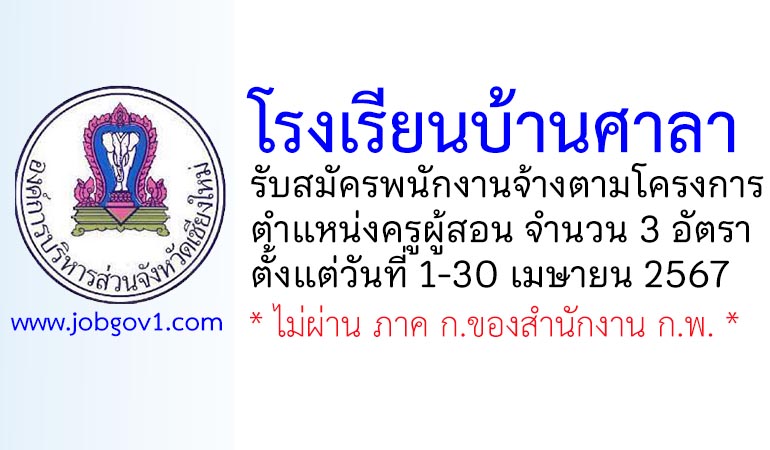 โรงเรียนบ้านศาลา รับสมัครพนักงานจ้างตามโครงการ ตำแหน่งครูผู้สอน 3 อัตรา ตั้งแต่วันที่ 1-30 เมษายน 2567