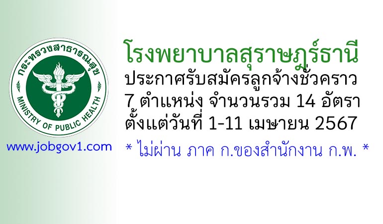 โรงพยาบาลสุราษฎร์ธานี รับสมัครลูกจ้างชั่วคราว 14 อัตรา ตั้งแต่วันที่ 1-11 เมษายน 2567